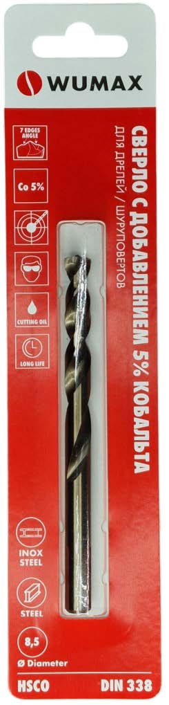 Сверло по металлу WUMAX HSCO (5% Co), DIN338, блистер Размер: 1,7 мб