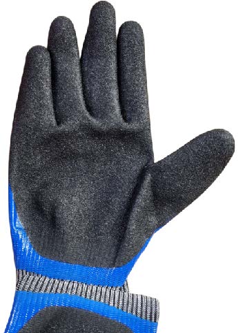 Бесшовное нитриловое покрытие всей ладони включая верхнюю часть ладони толщиной 13 мм.