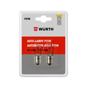 ОписаниеАвтолампа тип P21W 12V 21W, BA15S, 2 шт в блистереГалогенная лампа Wurth изготовлена из специального кварцевого стекла, поглощающего УФ-лучи. Это предотвращает повреждение пластиковых материалов фар.